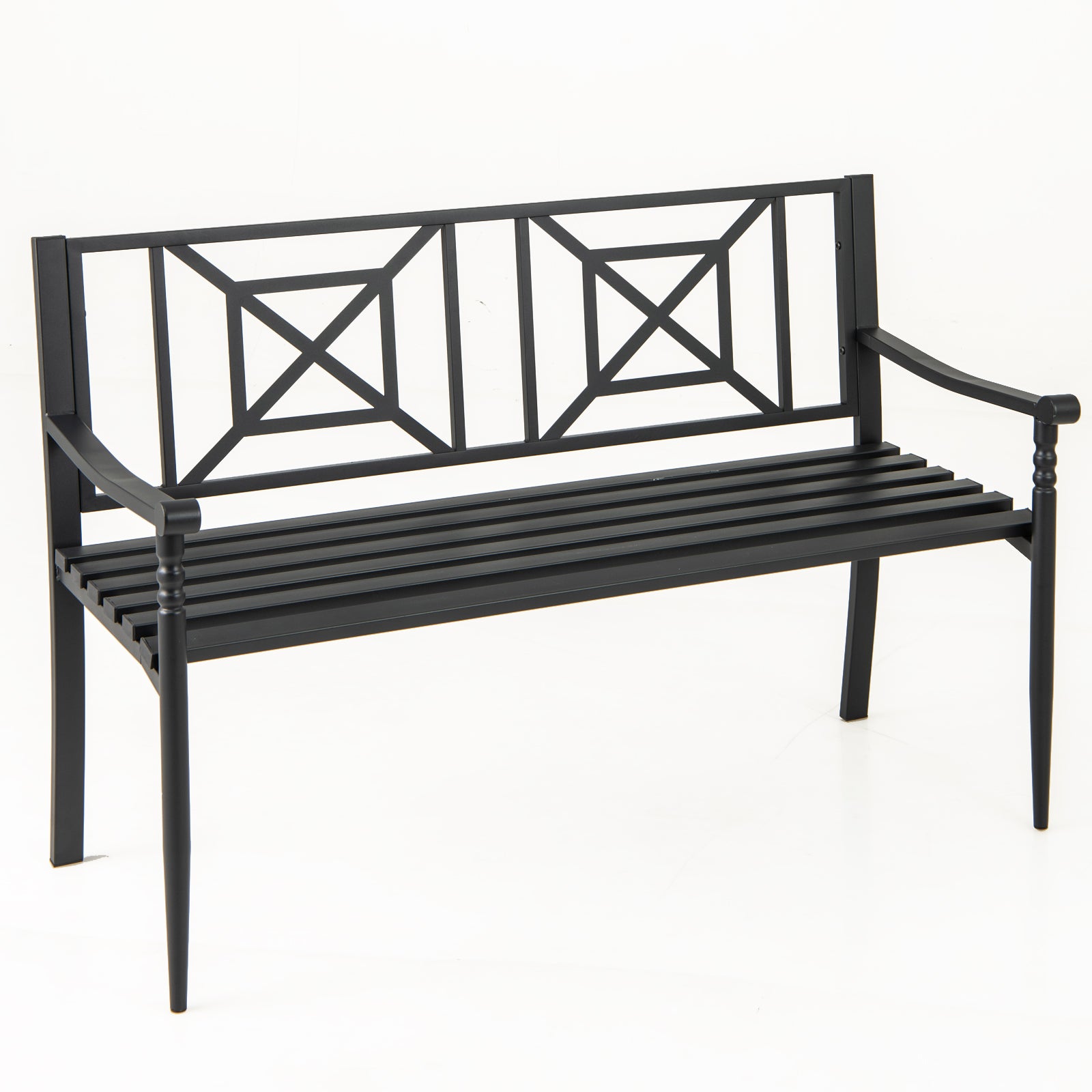 51 Inch Metal Bench with Curved Armrests for 2-3 People-Black