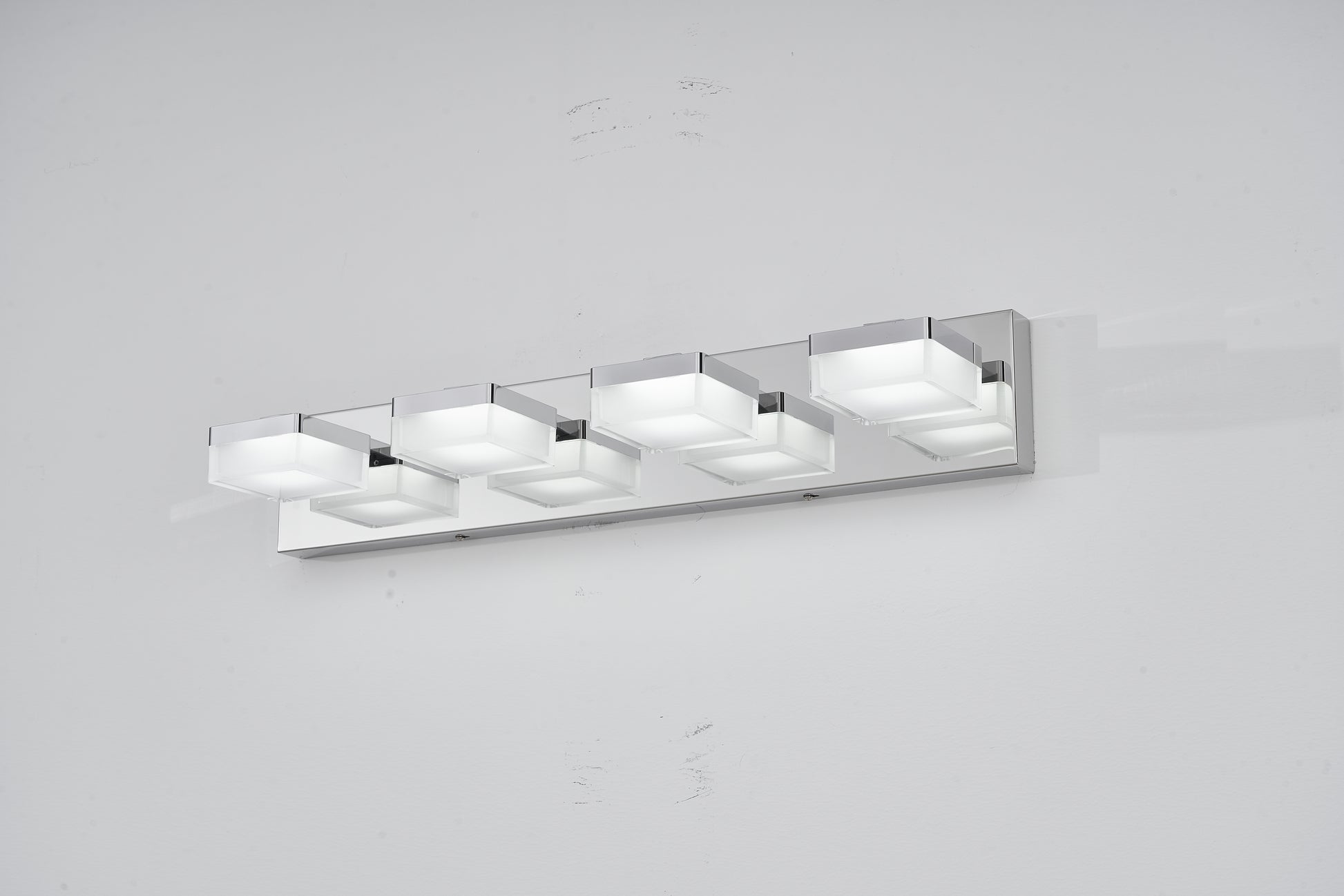 Modern Chrome LED Vanity Light, 4-Lights Wall Sconce for Bathroom and Mirror, Sleek Minimalist Desig