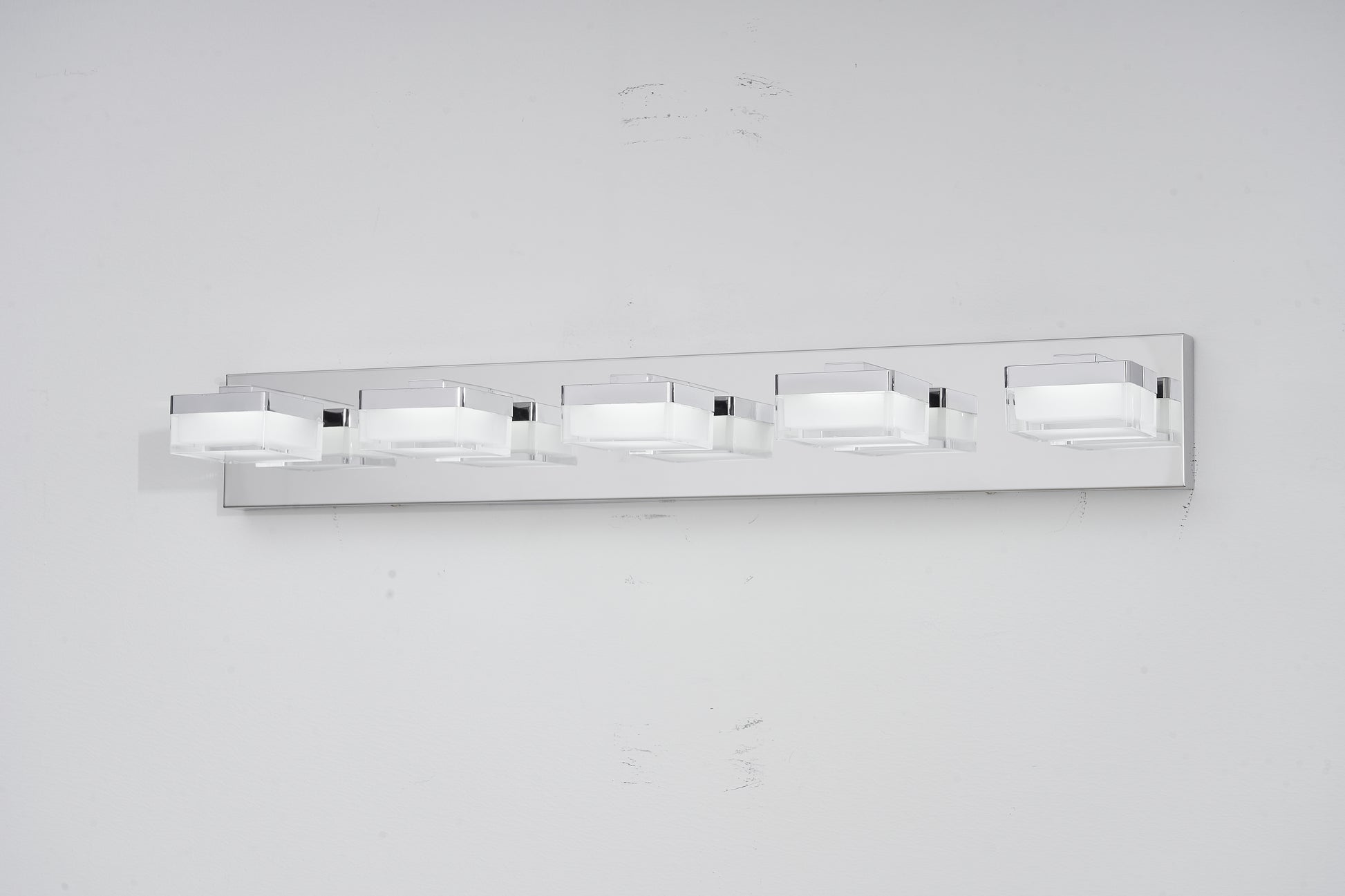 Modern Chrome LED Vanity Light, 5-Lights Wall Sconce for Bathroom and Mirror, Sleek Minimalist Design, Energy-Efficient, Easy to Install