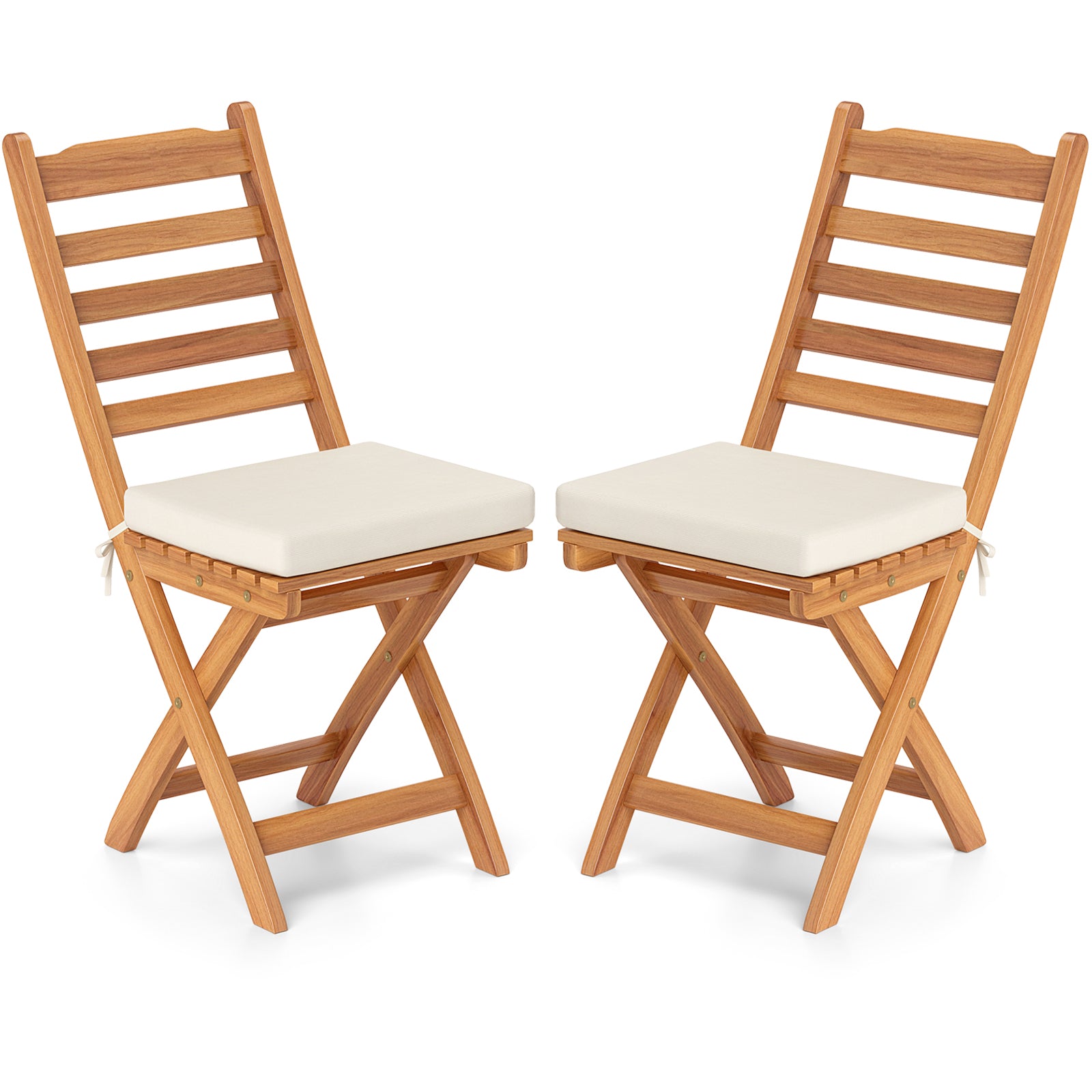 Patio Folding Chairs Set of 2 with Soft Seat Cushion-A