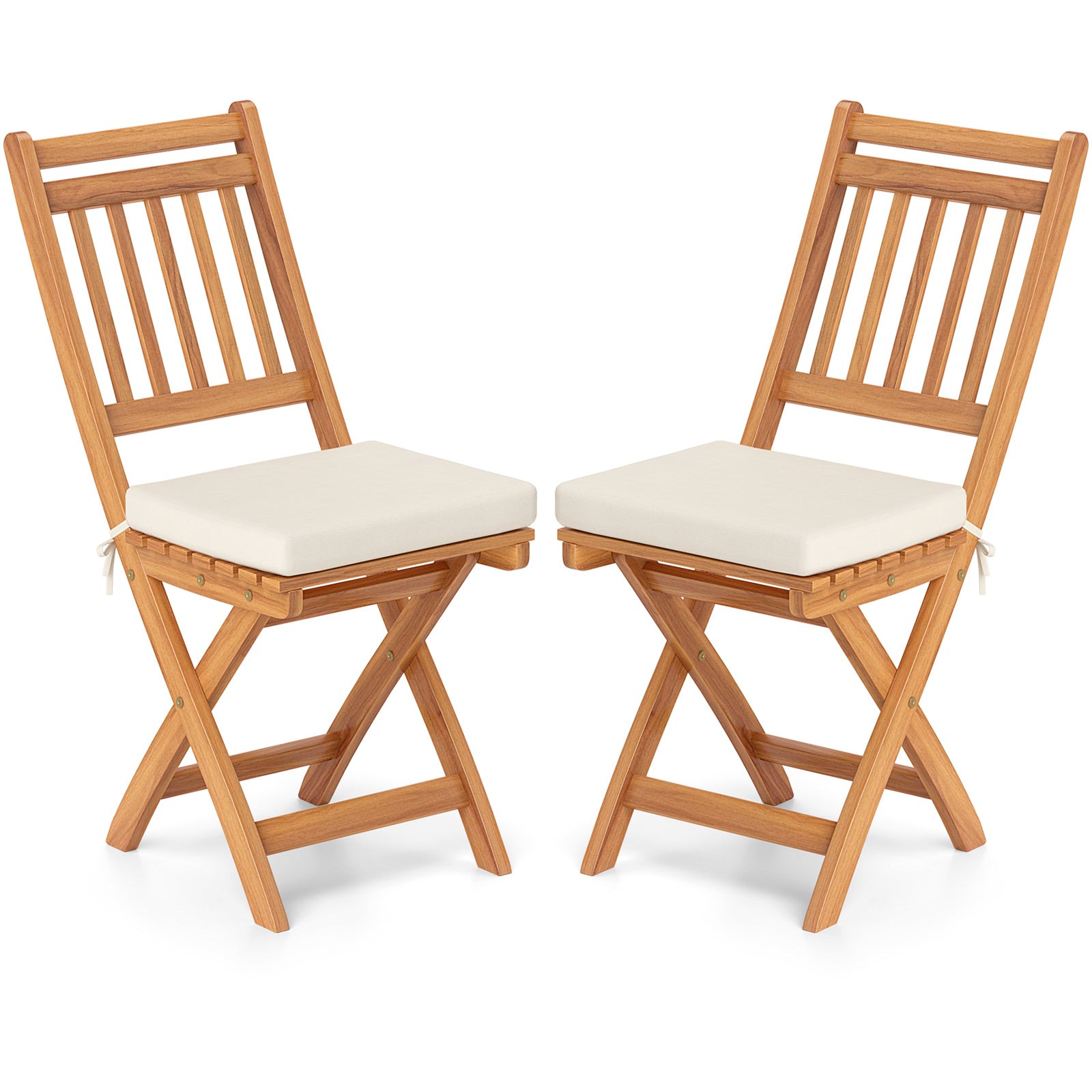 Patio Folding Chairs Set of 2 with Soft Seat Cushion-B
